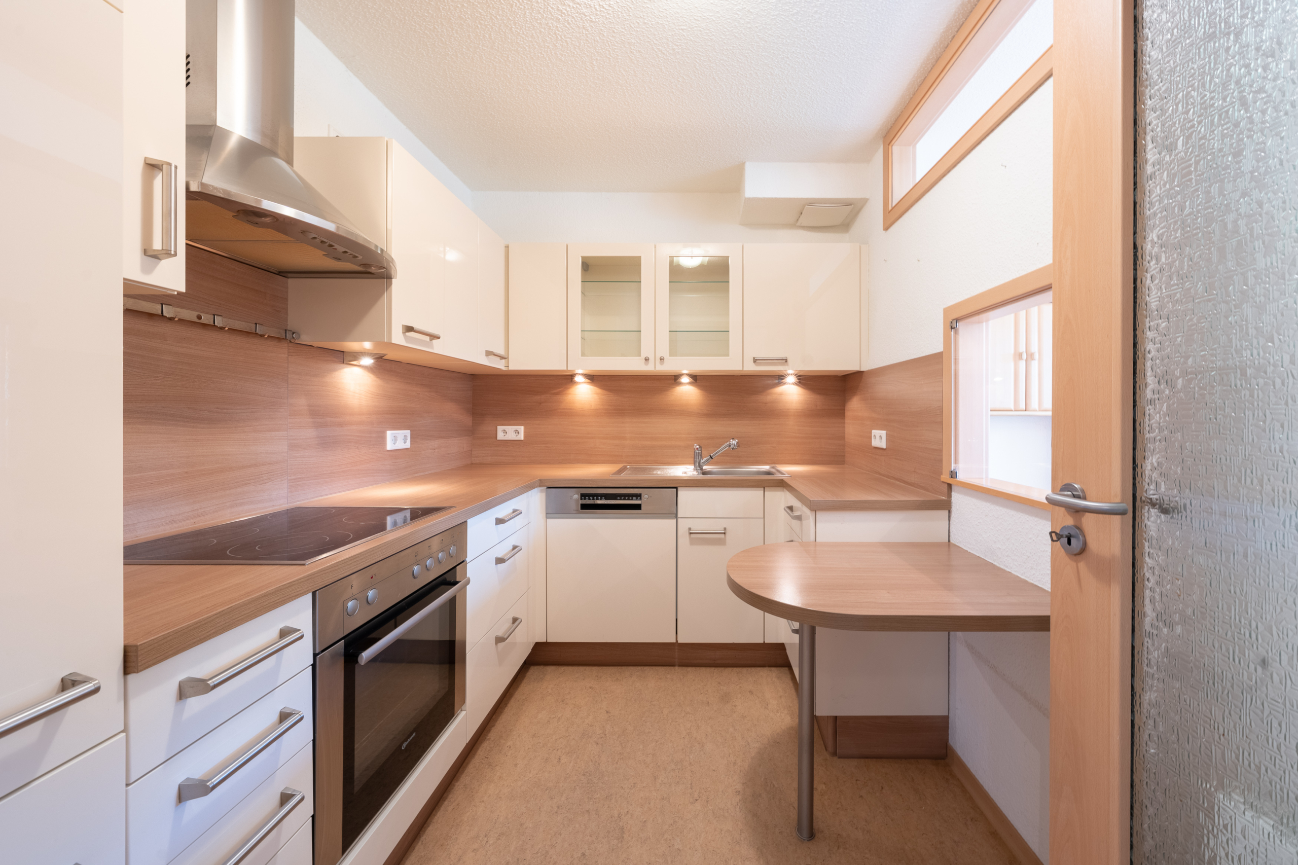 Die separate Küche ist mit einer großen, modernen Einbauküche ausgestattet. Auch die stilvolle Möblierung der Wohnung kann bei Interesse im Kaufpreis übernommen werden. Das großzügige, barrierefreie Bad bietet ausreichend Platz für Waschmaschine und Trockner.