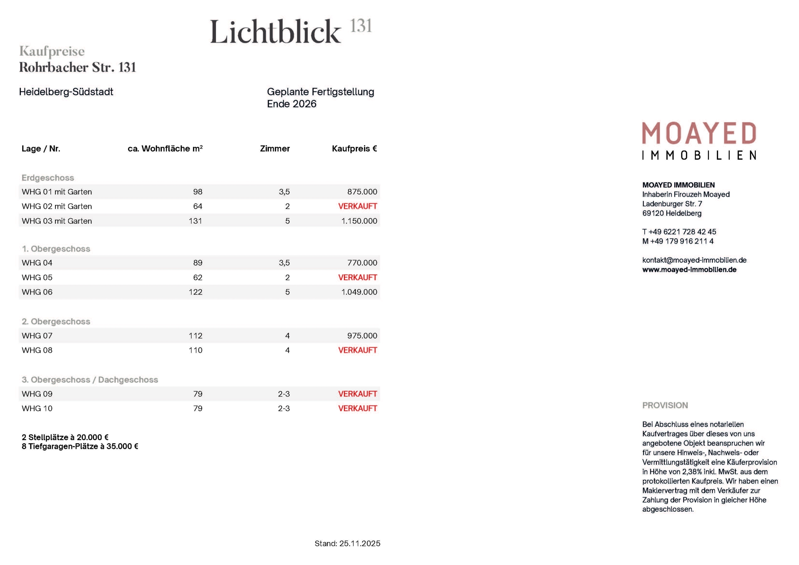 | Provision | Käuferprovision 2,38% des protokollierten Kaufpreises inkl. MwSt. Wir haben einen Maklervertrag mit dem Verkäufer zur Zahlung der Provision in gleicher Höhe abgeschlossen. |